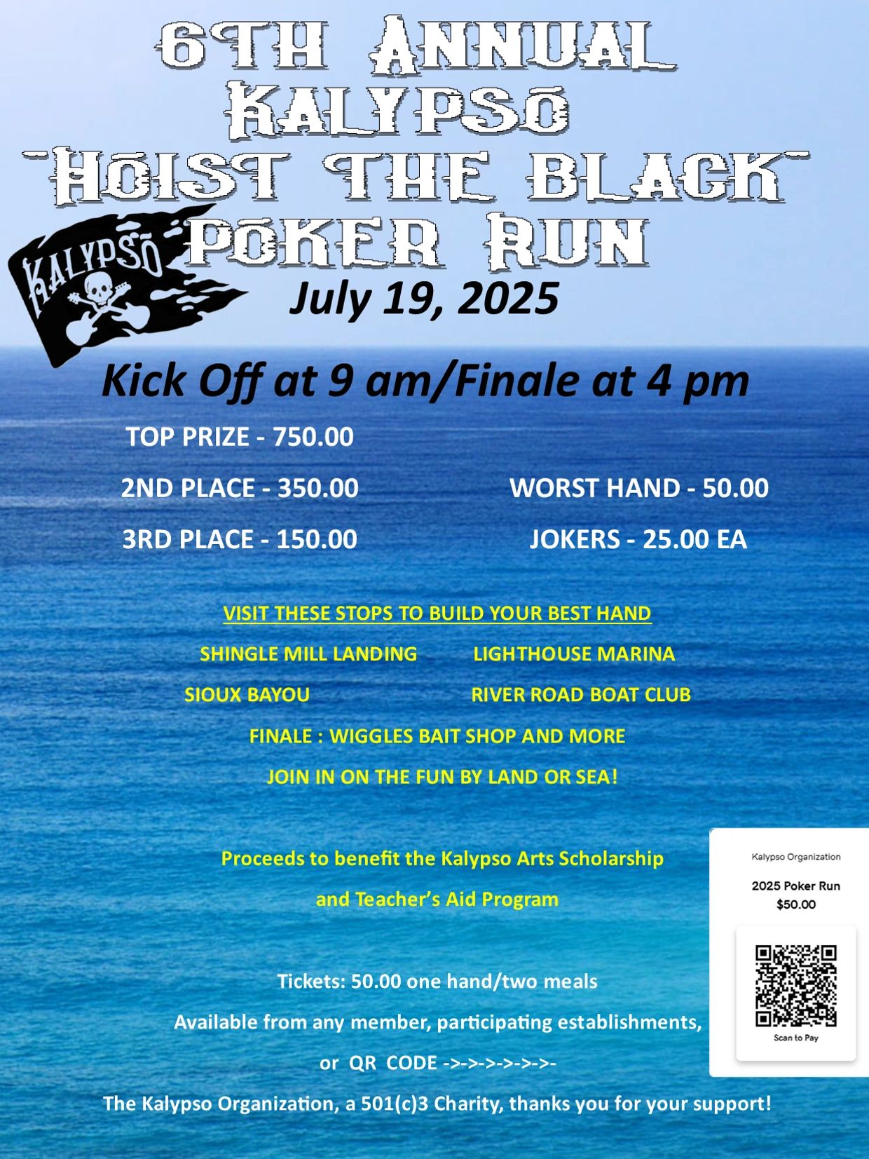 Enjoy the day along your route, see some old friends and meet some new ones. You may begin to pick up your cards at 9 am. There will be prizes, raffles, goody bags, and at the end we will have fried chicken dinners, music, CHARBROIL GRILL/GRIDDLE COMBO & MORE DRAWING, Split the Pot, and the chance to win cash prizes for the best...and worst...hands!