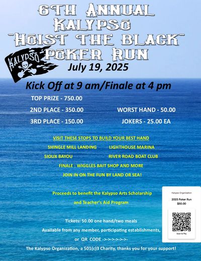 Ahoy Mates! Join us for our upcoming event and help us raise funds and awareness for our cause. Kalypso's "Hoist the Colors" Poker Run is a benefit event to support the Kalypso Scholarship and to help out local teachers with classroom projects in grades K-12 with our Teacher's Aid Program.